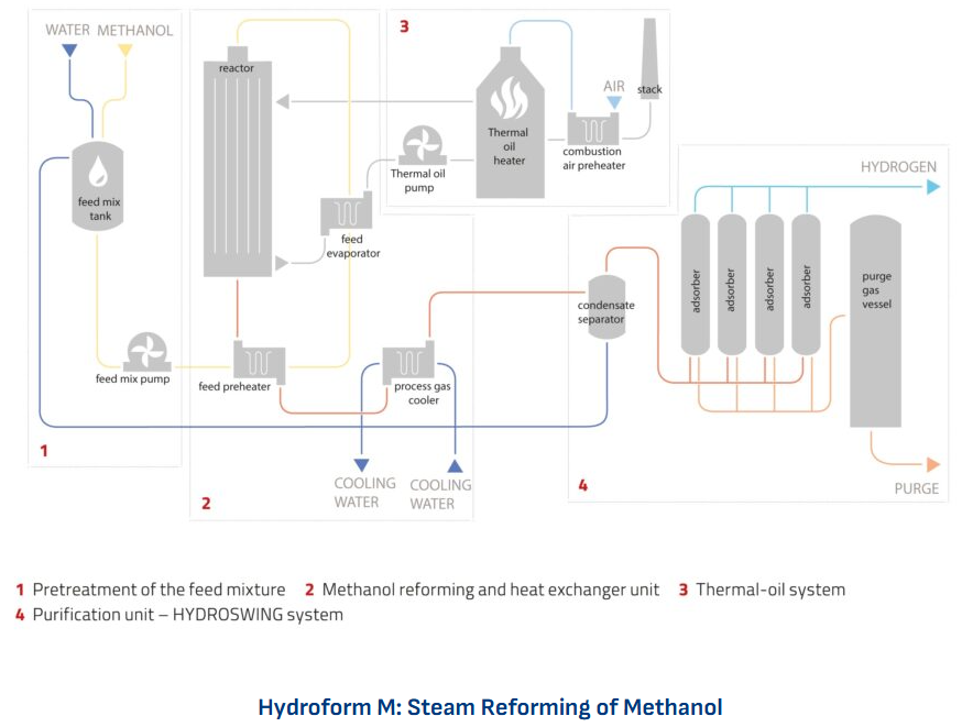 메탄올로부터 수소를 생성하는 컴팩트한 플랜트