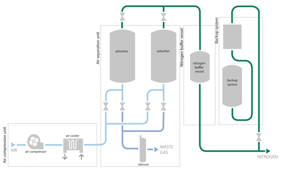 MAHLER의 질소 PSA 플랜트 작동 방식