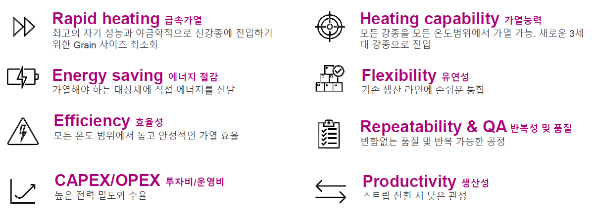 Fives는 1967년부터 유도가열 기술을 개발하기 시작하여, 2000년 세계 최초로 Transverse Flux 방식의 산업용 유도가열 설비를 개발하여 시장을 선도하고 있습니다.